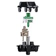 Ein CAD-HochprĂ€zisions-Bauteil aus Kunststoff-Polymer. Mit einer Toleranz von weniger als 0,01 Millimetern, fĂŒhrt es prĂ€zise den Schalt-Schlitten und bildet gleichzeitig die Aufnahme fĂŒr die Schalt-Mechanik des CHERRY-MX-Moduls.In der Version "MX RGB" ist die CHERRY-Refract-Technologie in das Bauteil integriert: Ein computerberechnetes Linsen-Set, das ĂŒber aktive Lichtbrechung die Beleuchtung aus der SMD-LED auf der Platine verlustfrei in die Tastenkappe lenkt.