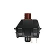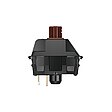 Ein weiteres CAD-HochprĂ€zisions-Bauteil aus versionsspezifischem Kunststoff-Polymer, das im Zusammenspiel mit GehĂ€use-Oberteil und Spiralfeder Widerstand und TastgefĂŒhl erzeugt und auf das die Tasten-Kappe aufgesteckt wird.Dieser braune Schaltschlitten verantwortet die taktile Schaltercharakteristik des CHERRY MX BROWN. Aufgrund der Ausbuchtung auf dem TLS Surface sendet der Schalter ein spĂŒrbares Feedback, wodurch dem Nutzer die genau Position der Auslösung ĂŒbermittelt wird.