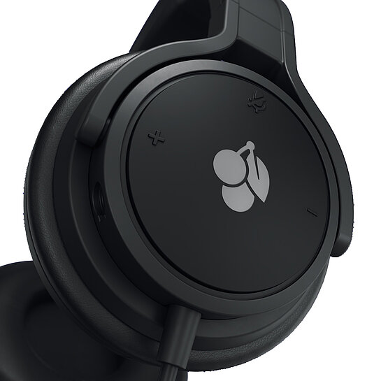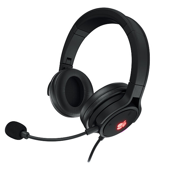 The high-quality synthetic leather ear cushions not only feel comfortable, they also shield you from ambient noise. The headphone's pads can be rotated to fit the individual shape of your ear perfectly. The pads can also be replaced if they get dirty. High-quality materials combined with the reduced design complete the overall package. The red illuminated CHERRY logos provide a visual highlight. Since the headset can be folded and thus easily transported, it is ideal for mobile work or frequent changes of location.