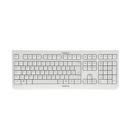 The full-size wireless CHERRY KW 3000 with arrow keys and numeric keypad boasts a flat design, low-noise keys and up to 10 million potential presses per key. This battery-operated CHERRY keyboard is easy to connect wirelessly using the supplied nano USB receiver and works reliably at a range of up to 10 meters.