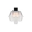The upper Housing is a CAD high precision component made of plastic polymer. With a tolerance of less than 0.01 mm, the component guides the switching slide precisely, forming the CHERRY MX switching mechanism housing.CHERRY Refract technology is integrated into the component: A computer-calculated lens set that uses active light refraction to direct the illumination from the SMD LED on the circuit board into the keycap without loss.