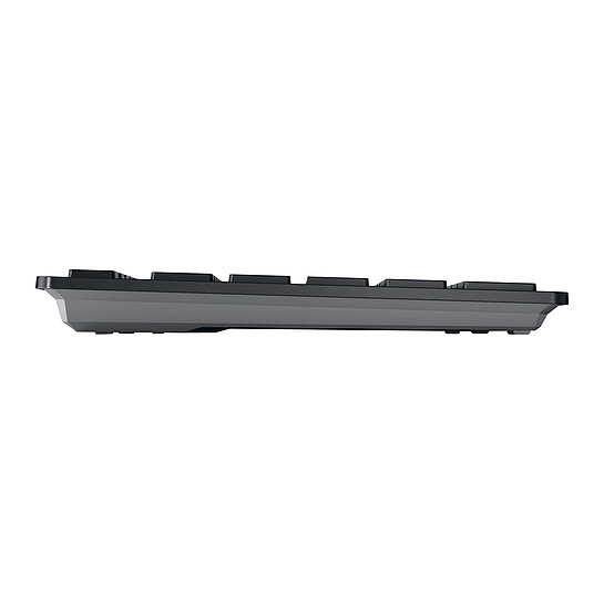 Mobile working at its very best: The flat CHERRY KW 9200 MINI keyboard without a numerical keypad can be easily transported from A to B and, despite its compact size, is just as easy to use and delivers the same quality as a full-size keyboard. With the rechargeable multi-device keyboard, you can control up to four devices at the same time and conveniently switch between two Bluetooth® channels, a 2.4 GHz wireless channel, and a cable channel. Whether for business or pleasure: There are no limits to your flexibility.