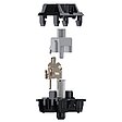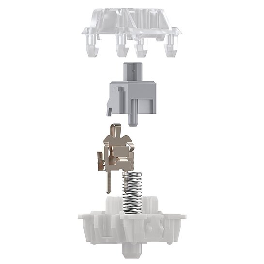 Un componente CAD de alta precisión fabricado con polímero plástico específicamente para Cherry MX crea el recorrido previo y la sensación de pulsación de la tecla entre la carcasa superior y el resorte helicoidal. La tapa de la tecla está fijada en la parte superior del vástago.