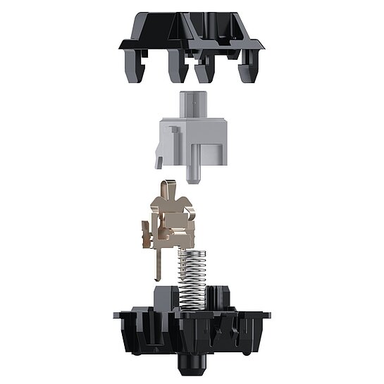 El CHERRY MX GREY es una versión ligeramente modificada del CHERRY MX Brown. La característica de este interruptor táctil es una respuesta notable y silenciosa. El equivalente gris ofrece una mayor fuerza de accionamiento en comparación con la variante marrón. El robusto y exótico extranjero es un interruptor popular entre los entusiastas.