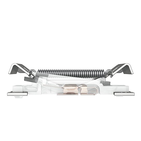 Las alas y el muelle están fabricados en acero inoxidable, lo que hace que el interruptor sea robusto y garantice una larga vida útil. Gracias al muelle pre-tensionado, el usuario experimenta una activación rápida y una sensación táctil constante durante toda la vida útil del interruptor. Las alas conectan la tecla con el interruptor, asegurando un movimiento paralelo y equilibrado, incluso con activaciones fuera del centro.3 ACTUADOR Y ZÓCALO DE POLÍMERO