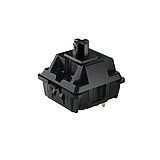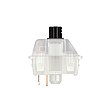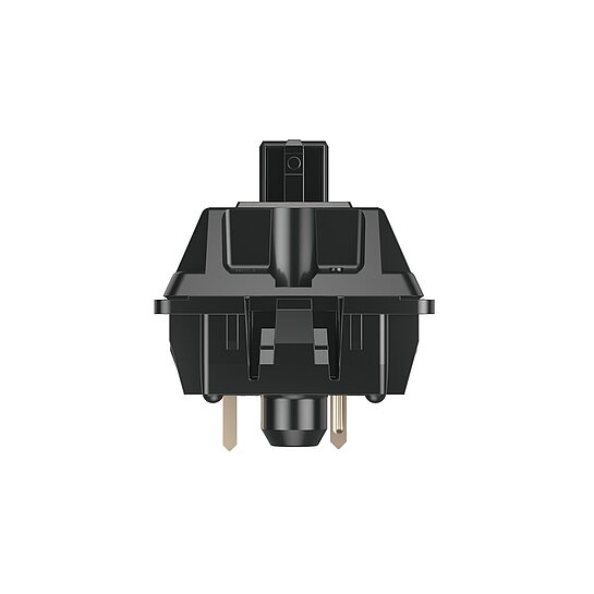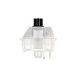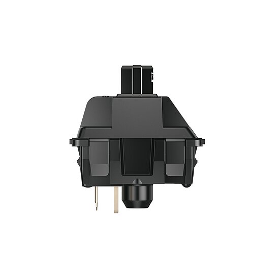 Un componente CAD de alta precisión fabricado en polímero plástico específicamente para el Cherry MX crea el recorrido previo y la sensación de pulsación entre la carcasa superior y el muelle helicoidal. La tapa de la tecla se fija en la parte superior del vástago.Esta corredera de conmutación negra es la responsable de las características de conmutación lineal del CHERRY MX BLACK. Gracias a la superficie TLS recta, el interruptor se dispara directamente.