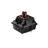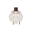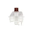 Un componente CAD de alta precisión fabricado con polímero plástico específicamente para Cherry MX crea el recorrido previo y la sensación de pulsación de la tecla entre la carcasa superior y el resorte helicoidal. La tapa de la tecla está unida a la parte superior del vástago.Esta corredera de conmutación marrón es responsable de las características táctiles del interruptor CHERRY MX BROWN. Gracias a la protuberancia de la superficie TLS, el interruptor envía una señal de respuesta perceptible que comunica al usuario la posición exacta del gatillo.