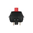 Un componente CAD de alta precisión fabricado con polímero plástico específicamente para Cherry MX crea el recorrido previo y la sensación de pulsación de la tecla entre la carcasa superior y el resorte helicoidal. La tapa de la tecla está unida a la parte superior del vástago.Esta corredera de conmutación roja es responsable de las características de conmutación lineales del CHERRY MX RED. Debido a la superficie TLS recta, el interruptor se activa directamente.