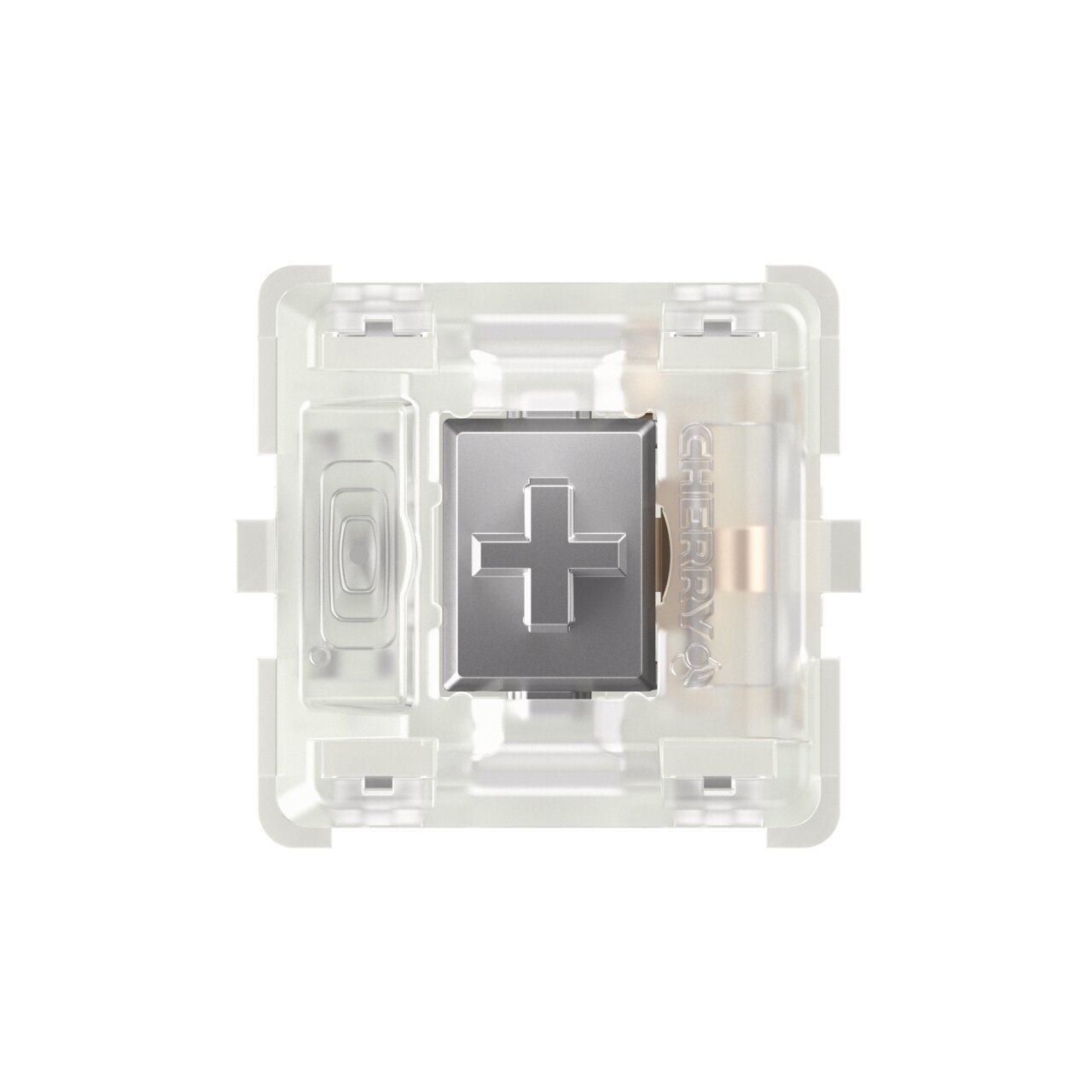 Un componente CAD de alta precisión fabricado en polímero plástico específicamente para Cherry MX crea el recorrido previo y la sensación de pulsación de la tecla entre la carcasa superior y el resorte helicoidal. La tapa de la tecla está fijada en la parte superior del vástago.Esta corredera de conmutación plateada es responsable de las características de conmutación lineal del CHERRY MX Speed Silver. Debido a la superficie TLS recta, el interruptor se activa directamente.