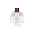 Un composant CAD de haute précision en plastique polymère spécialement conçu pour la Cherry MX crée la pré-course et la sensation de frappe entre le boîtier supérieur et le ressort hélicoïdal. Le capuchon de touche est fixé sur la partie supérieure de la tige.Cette glissière de commutation marron est responsable des caractéristiques tactiles du CHERRY MX BROWN. Grâce au renflement de la surface TLS, le commutateur envoie un retour d'information perceptible qui communique à l'utilisateur la position exacte de la gâchette.