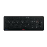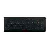 Ensemble, le clavier STREAM KEYBOARD et la membrane STREAM PROTECT MEMBRANE forment le CHERRY STREAM PROTECT KEYBOARD, facile à nettoyer ou à désinfecter et très agréable à utiliser. La version sans fil porte le nom de STREAM PROTECT KEYBOARD WIRELESS. En cas d’utilisation fréquente et variée, les claviers peuvent être un réservoir de saleté et de germes. Sur le CHERRY STREAM PROTECT KEYBOARD, la saleté et les micro-organismes tels que les bactéries et virus peuvent être éradiqués par simple essuyage grâce à sa surface plate et entièrement fermée. La membrane peut aussi être retirée du clavier pour la nettoyer complètement ou la changer. La STREAM PROTECT MEMBRANE protège ainsi efficacement les personnes, le clavier et l'environnement. Le STREAM PROTECT KEYBOARD WIRELESS utilise la technologie radio 2,4 GHz avec une portée maximale de 10 mètres extrêmement fiable. Le clavier peut être connecté au PC via le récepteur en mode plug-and-play. La transmission se fait avec un cryptage AES-128. Le clavier dispose d’indicateurs de batterie faible.