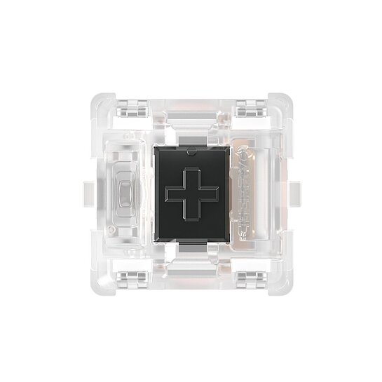 Questo componente di alta precisione in plastica polimerica determina la corsa preliminare e la sensazione di pressione tra l'alloggiamento superiore e la molla. La parte superiore dello stelo nero permette l'aggancio del keycap.3 Attuatore