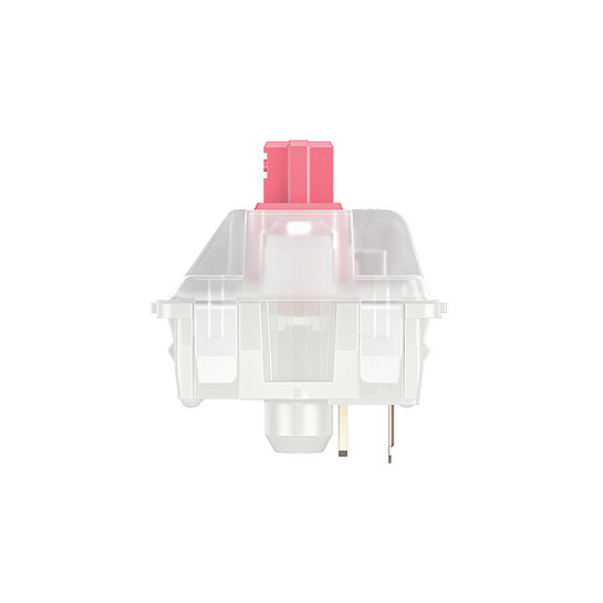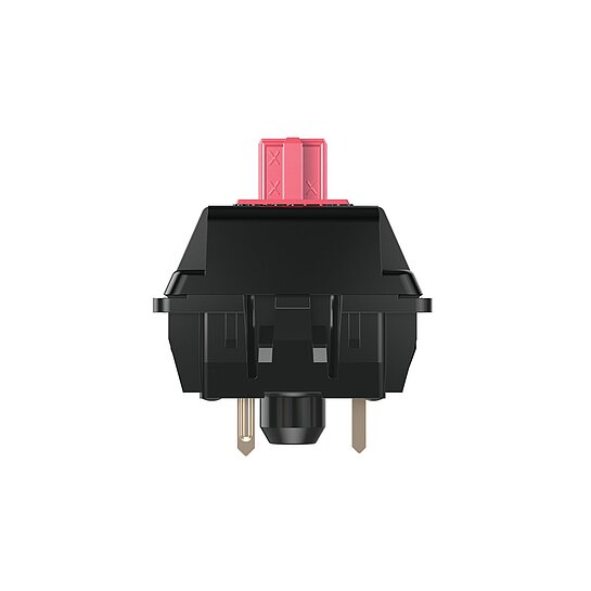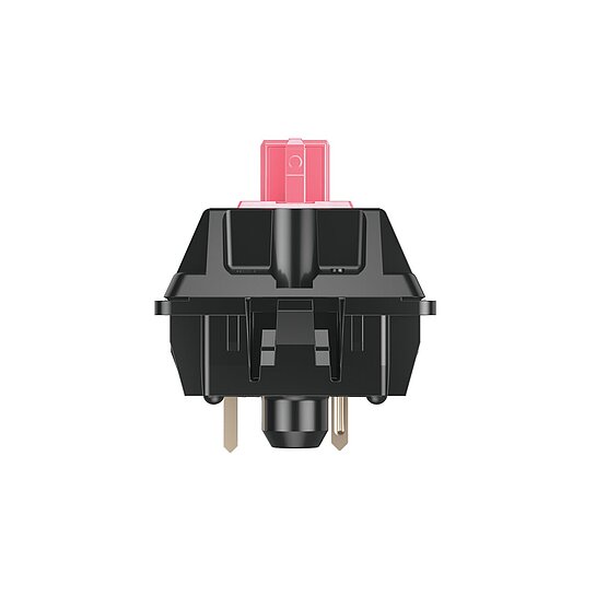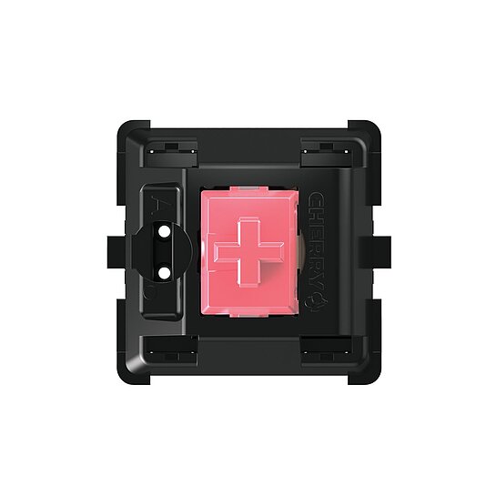 Un componente CAD ad alta precisione in polimero plastico appositamente per Cherry MX crea la precorsa e la sensazione di battuta tra l'alloggiamento superiore e la molla elicoidale. Il copritasto è fissato sulla parte superiore dello stelo. Lo stelo degli interruttori MX Silent è costituito da due componenti e contiene una tecnologia di riduzione del rumore brevettata e integrata.Questa slitta di commutazione rosa è responsabile delle caratteristiche di commutazione lineare della CHERRY MX Silent Red. Grazie alla superficie dritta TLS, l'interruttore si attiva direttamente.
